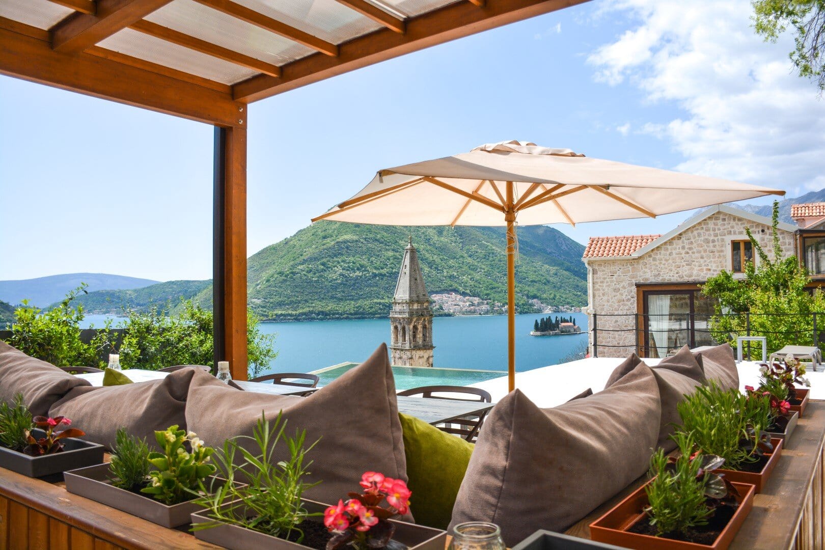 Located in Perast, a small UNESCO-protected baroque town 13km from the Old Town of Kotor, this six master bedroom stone villa has been carefully renovated in an authentic contemporary style. Positioned to capture open sea views, it features a private pool and high-end interior finishes.