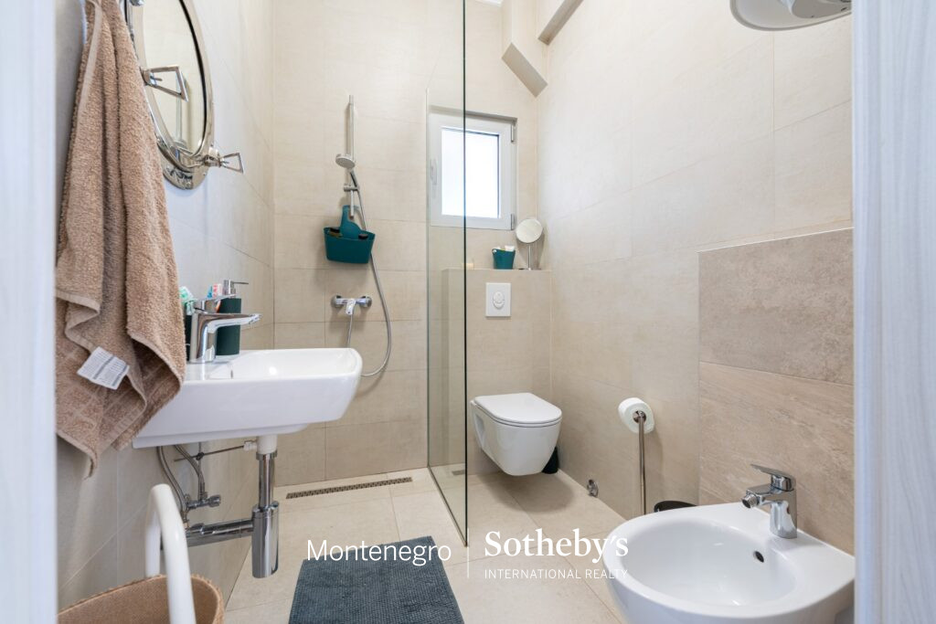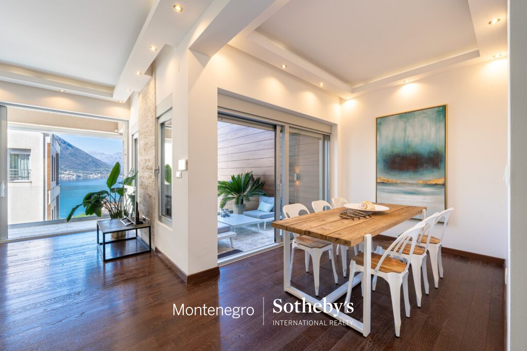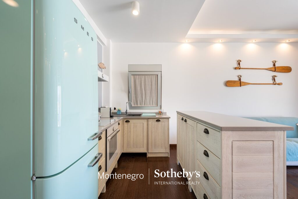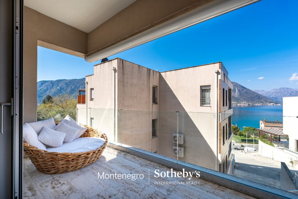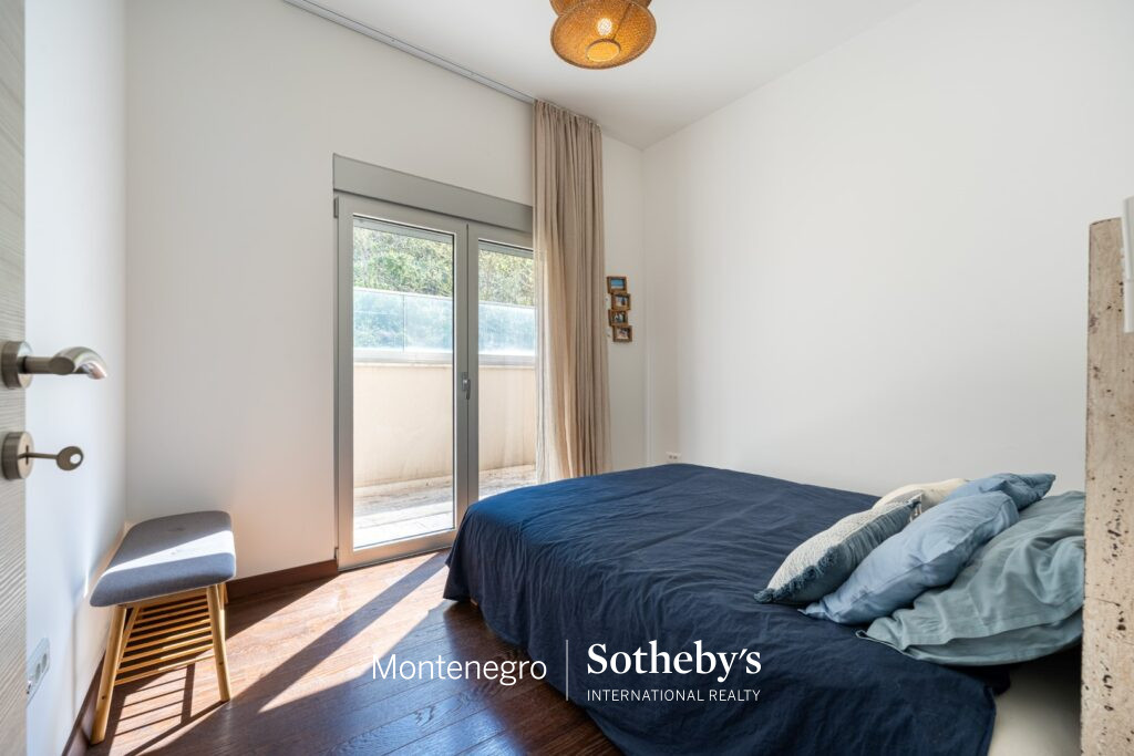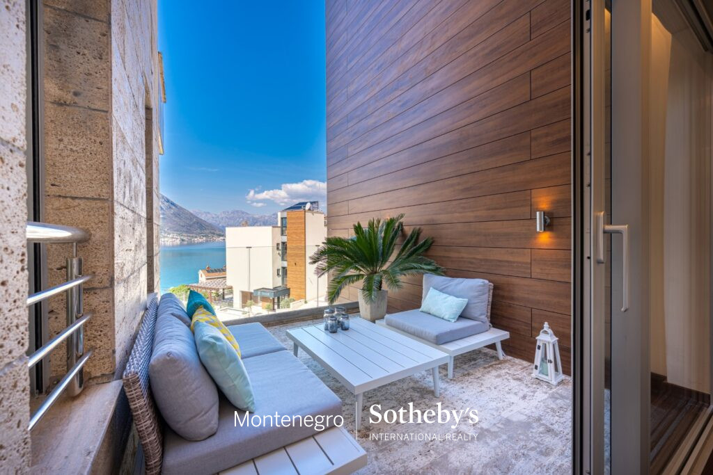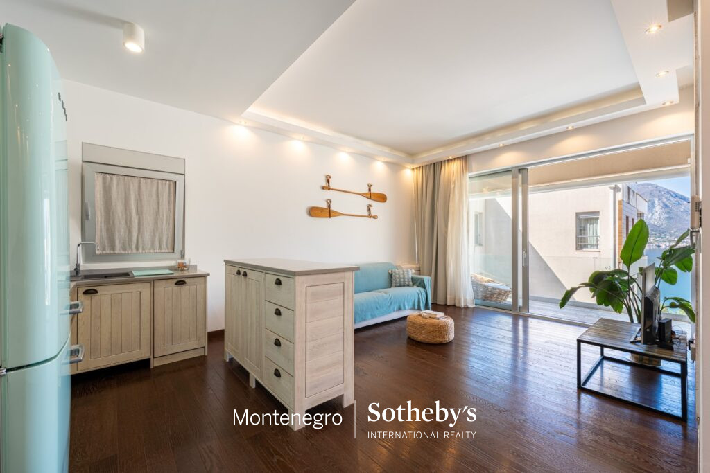 A modernly furnished two-bedroom apartment with a sea view, located in Dobrota, Kotor.