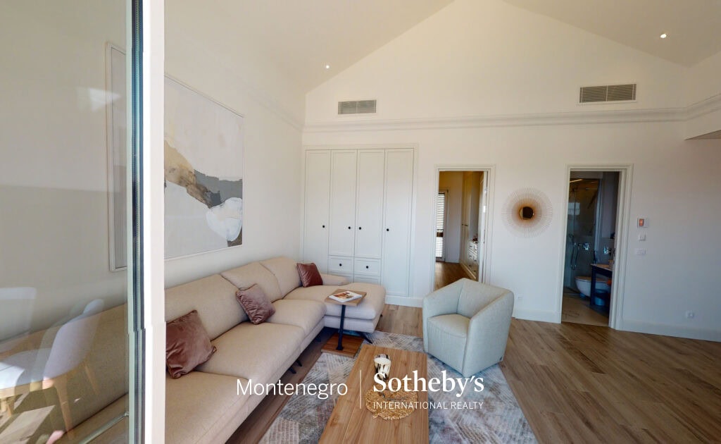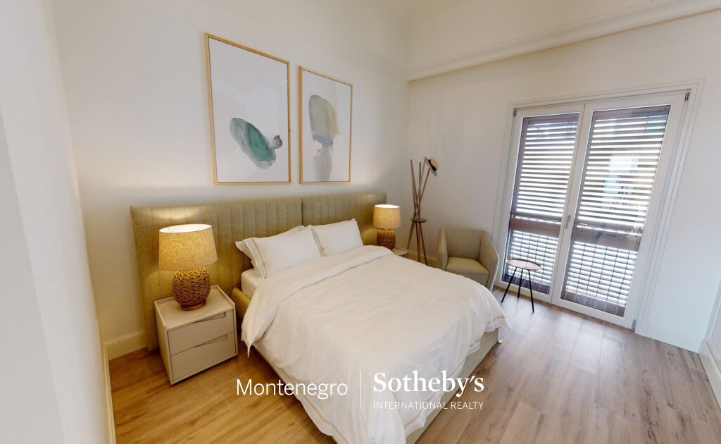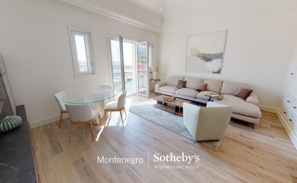 A furnished one-bedroom apartment of 74 m2 with an open sea view, located in the Marina village, Luštica Bay.