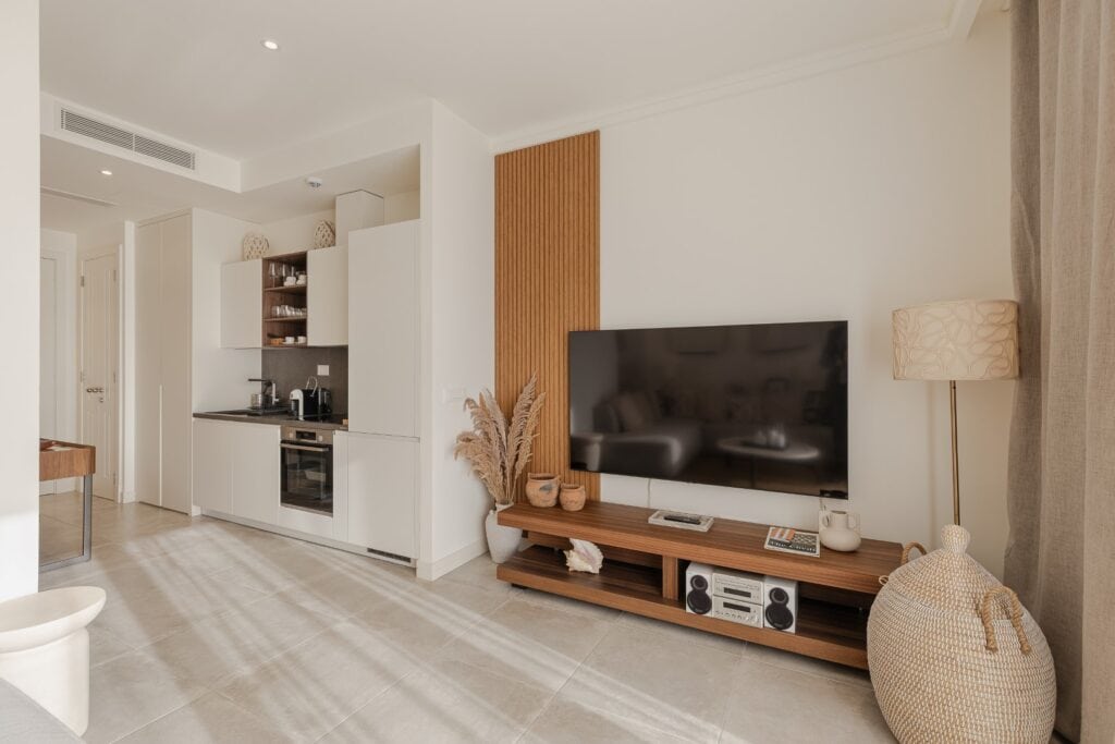 The new owners will be able to enjoy the outdoor swimming pool surrounded by greenery. They will have access to the beautiful sandy beaches within the resort, which are only a few minutes walk from the apartment.