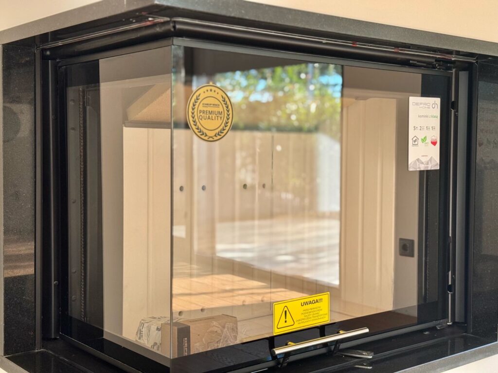 Ground floor: An open-concept living area that combines the kitchen, dining room, and living room with a fireplace by Defro, one guest bedroom with an en-suite bathroom, and an additional guest toilet.