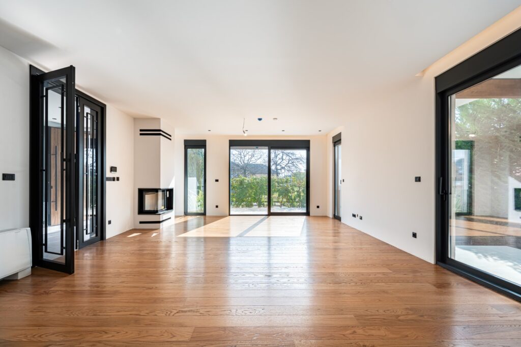 The villa is equipped with a modern anti-burglary system with motion detectors, glass-break sensors, and fire alarm sensors, while lighting and electrical accessories are by AVE.
