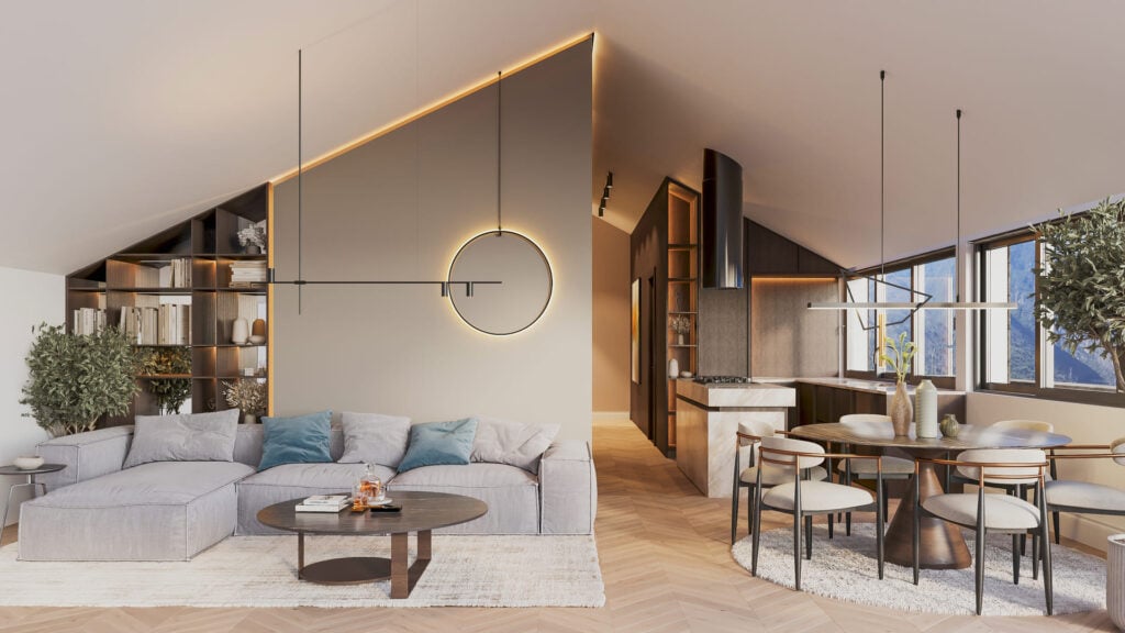 The apartment consists of spacious living room with kitchen and dining area, two bedrooms, two bathrooms and a terrace of 6 m2 with panoramic view of the sea and Boka Bay.
